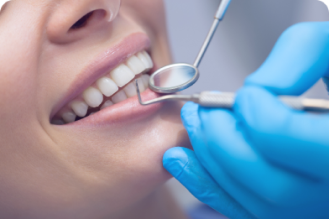 На приеме стоматолог проведет осмотр, чтобы выявить признаки воспаления десен, и с помощью специального инструмента — зонда — измерит глубину десневых карманов (если они есть)2.